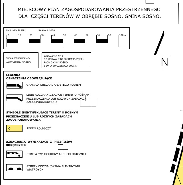 W załącznikach przedstawiamy uchwałę Nr XXXI/195/2021 Rady Gminy Sośno z dnia 30 czerwca 2021 r. w sprawie uchwalenia miejscowego planu zagospodarowania przestrzennego dla części terenów w obrębie Sośno, gmina Sośno.